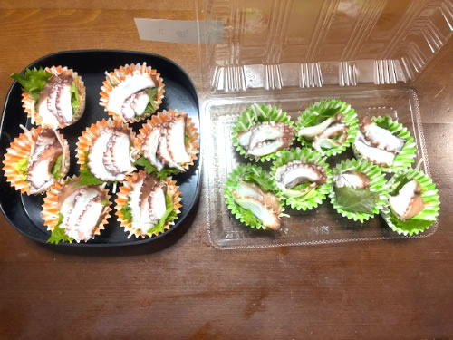 皆さんに、お刺身、やわらか煮、タコぶつ、タコ飯などを味わって頂きました。